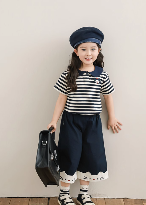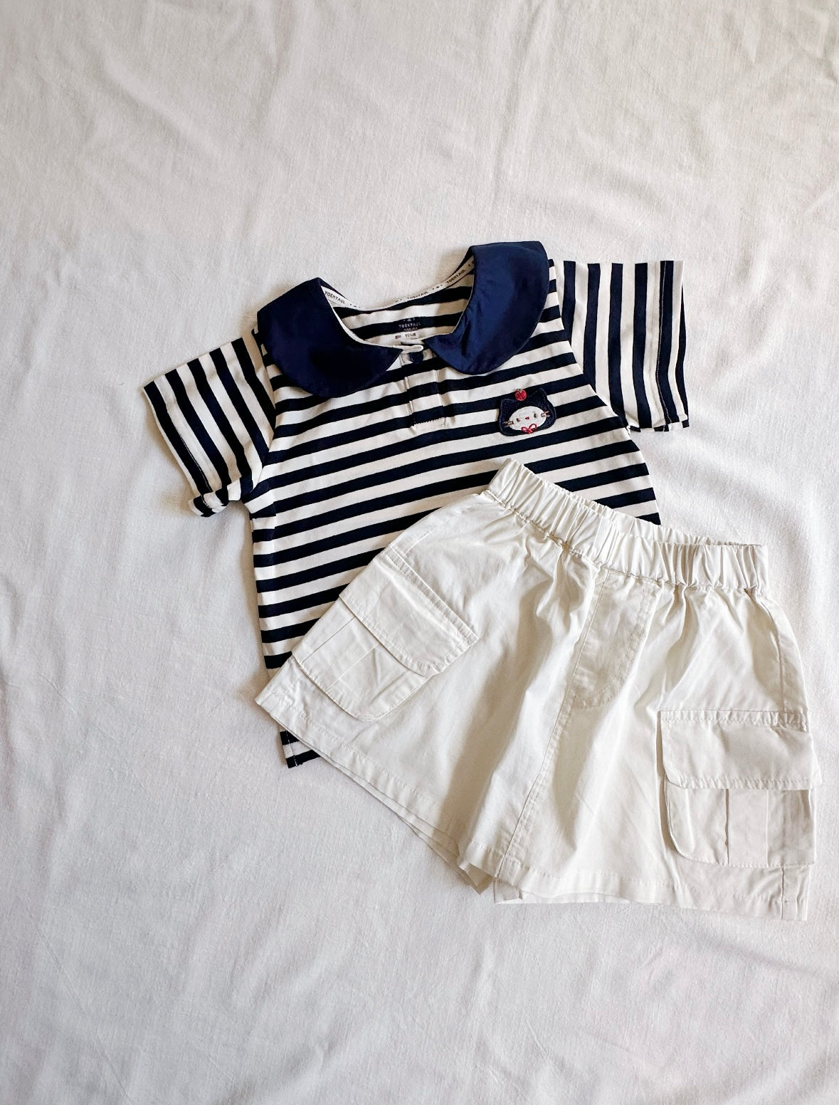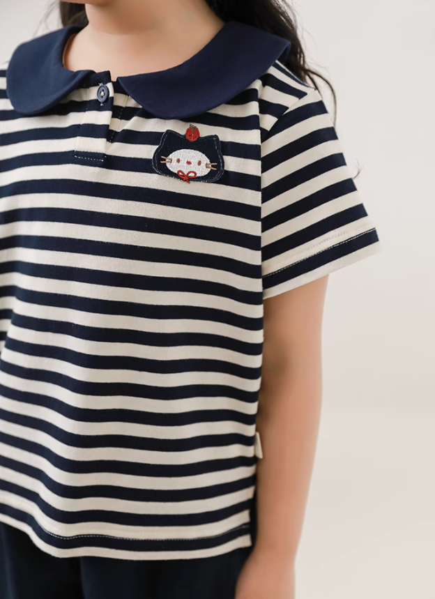 This navy-striped top features a sweet Peter Pan collar and a nautical vibe inspired by days by the sea. Soft and comfy, it pairs effortlessly with a favourite shorts or jeans for an irresistibly cute Summer look.