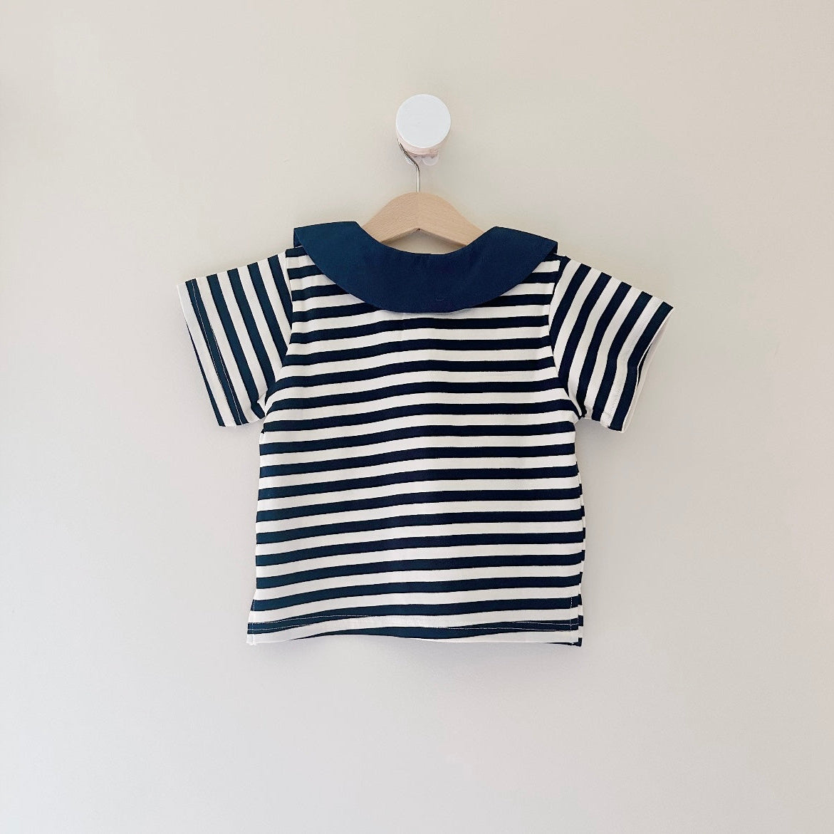 • Load image into Gallery viewer, Navy Stripe Collar Tee